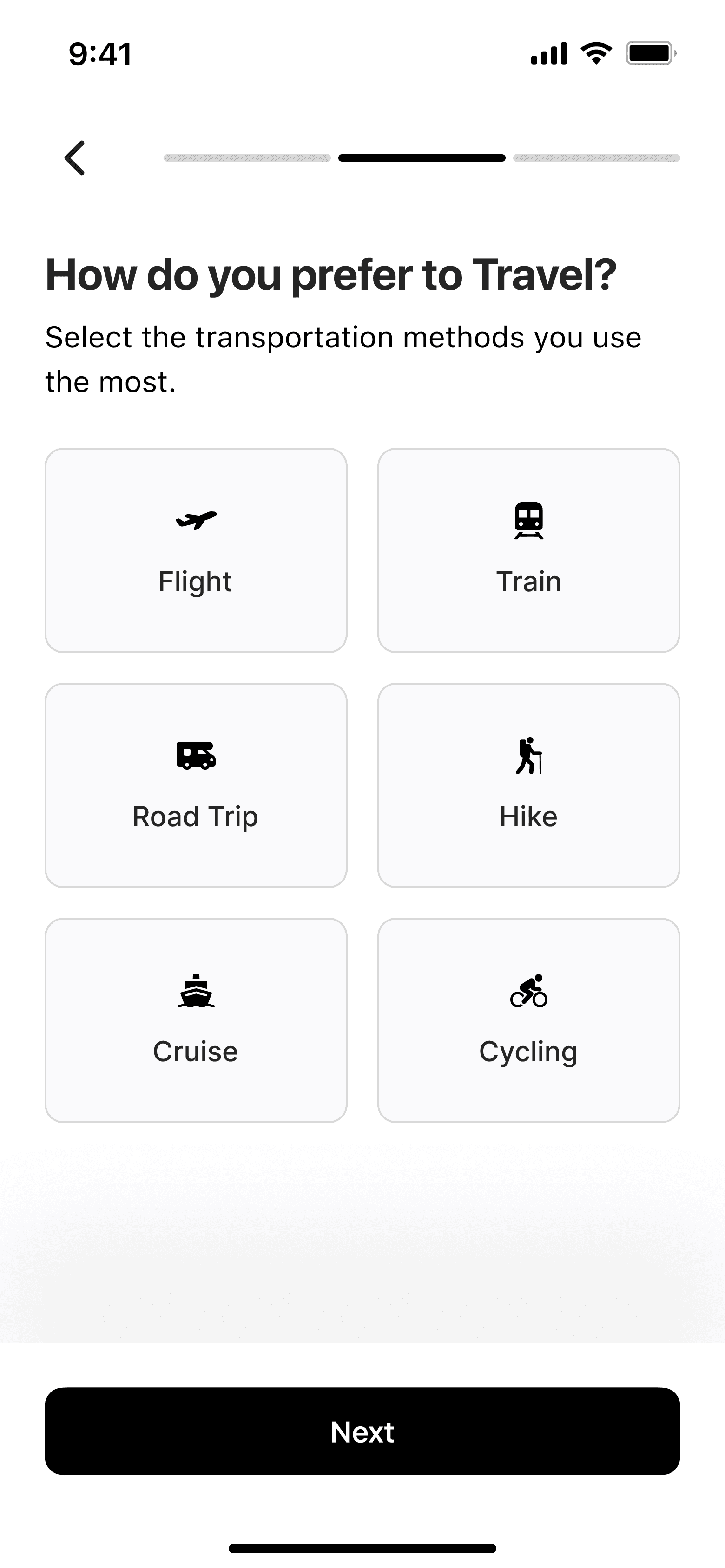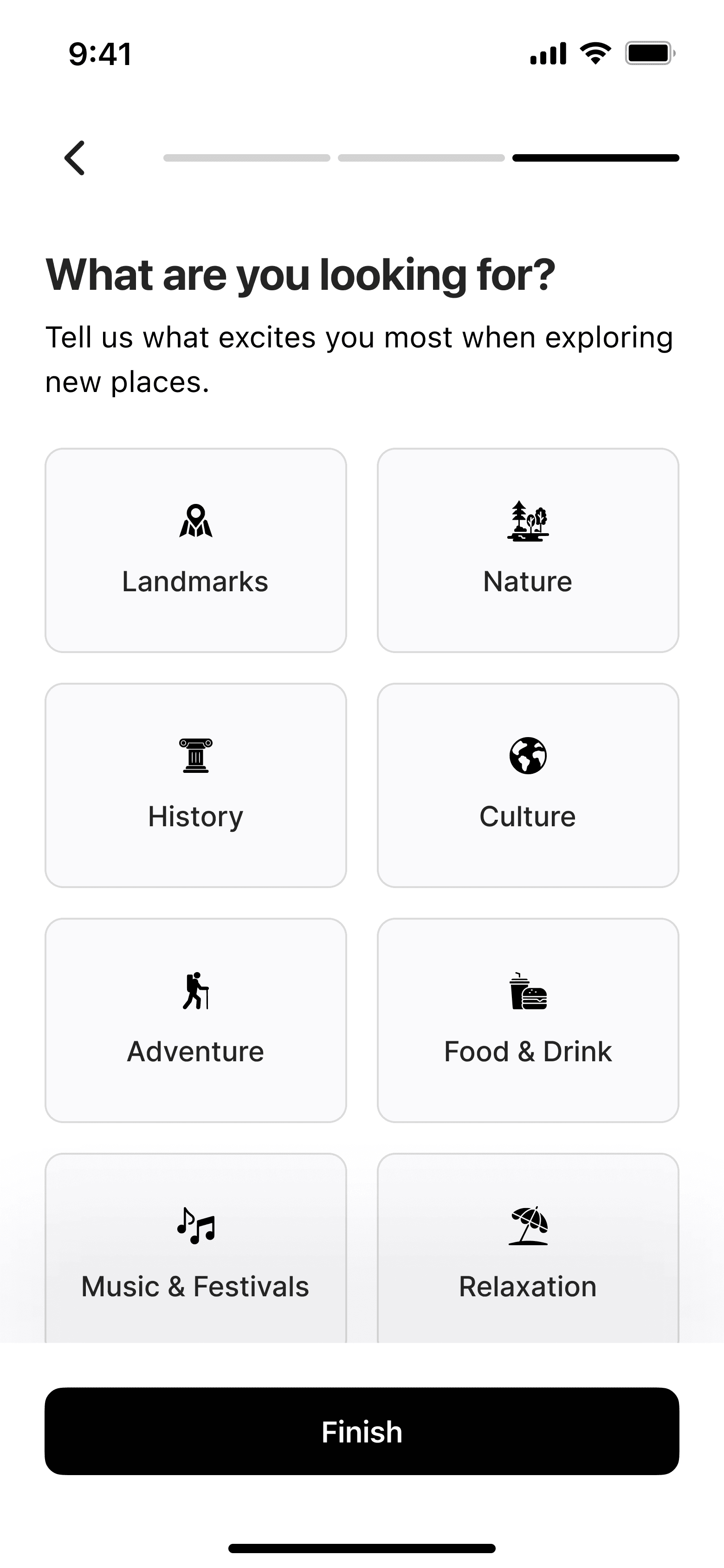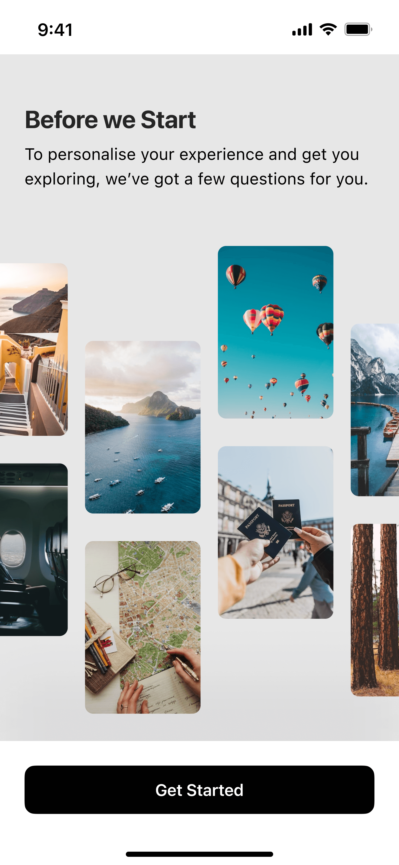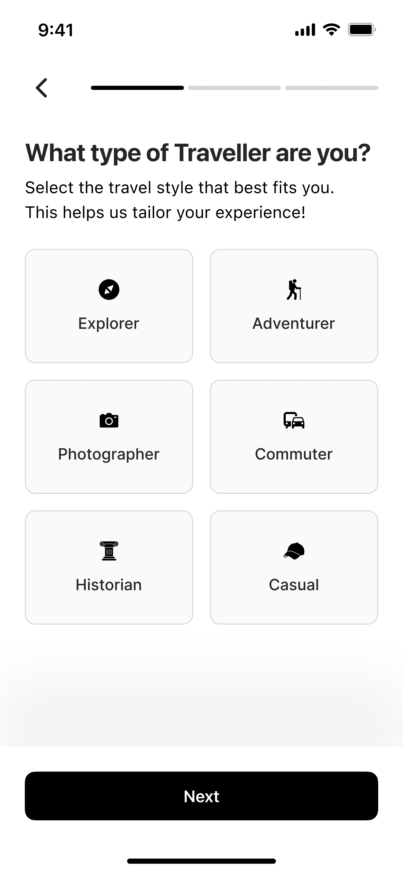 A simple setup flow to understand travel preferences, interests and content types.