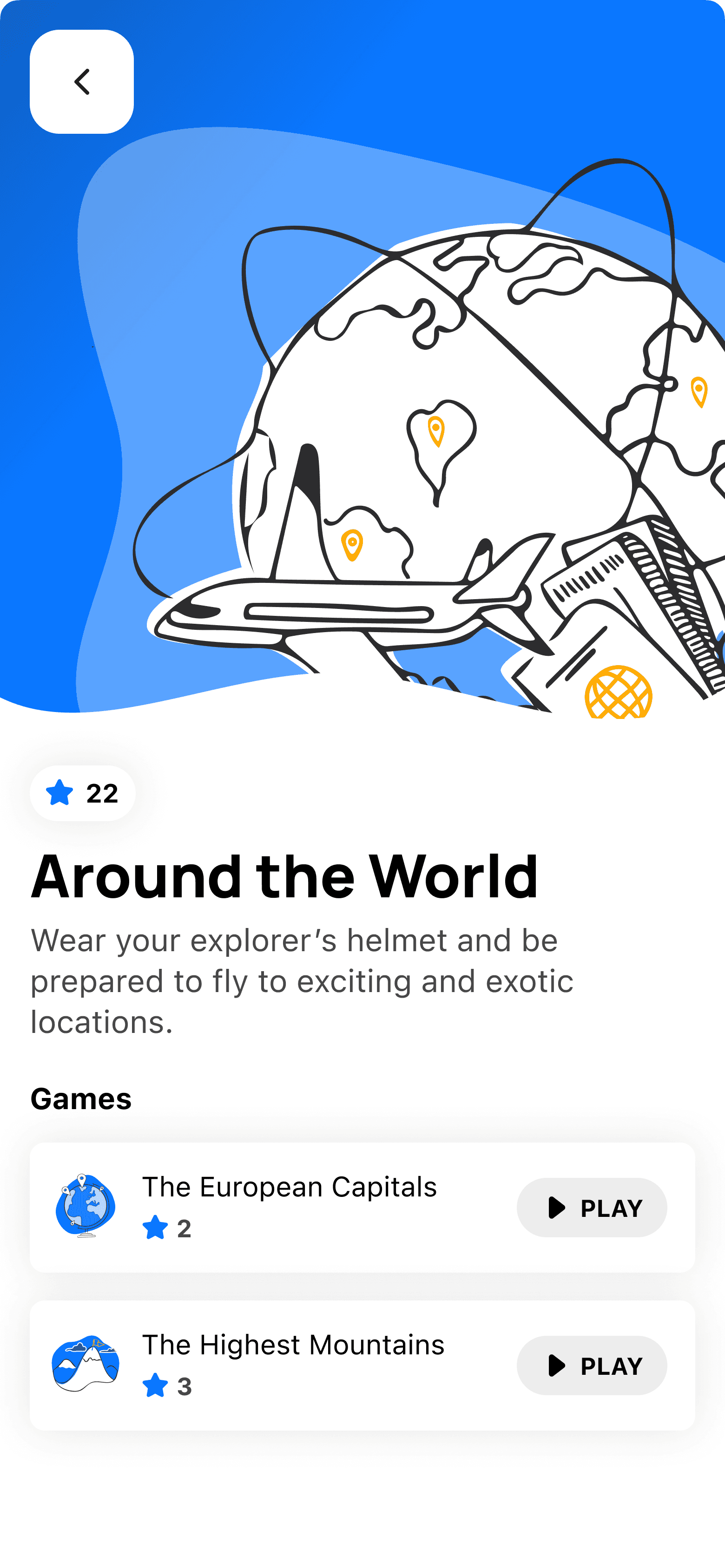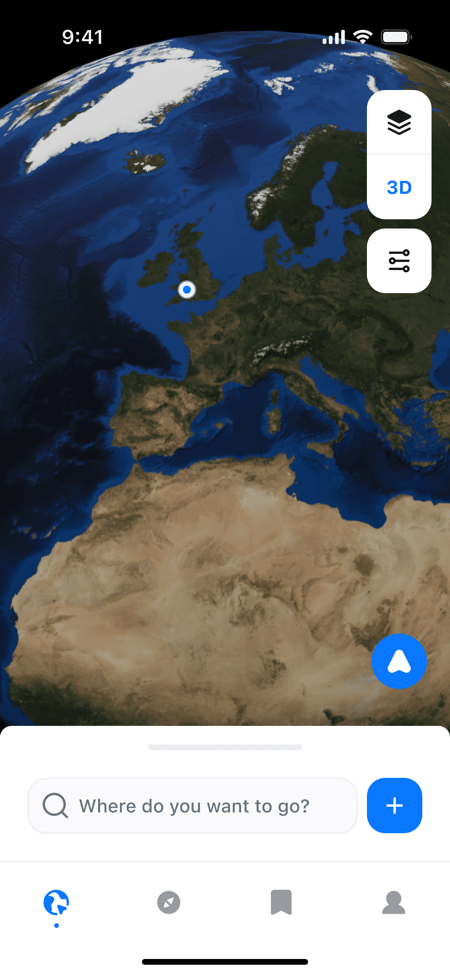 An interactive map or globe where users could explore places and access points of interest.