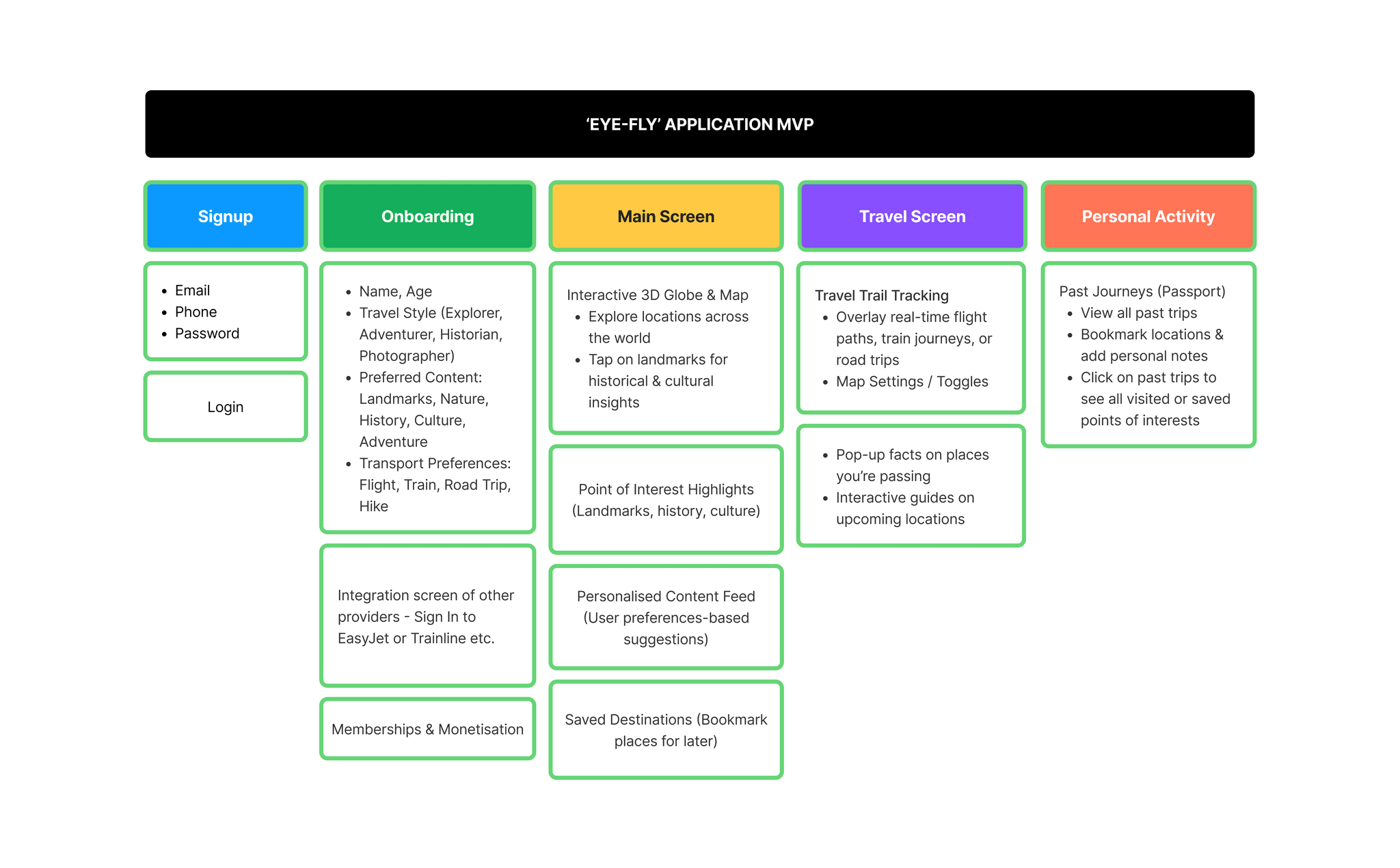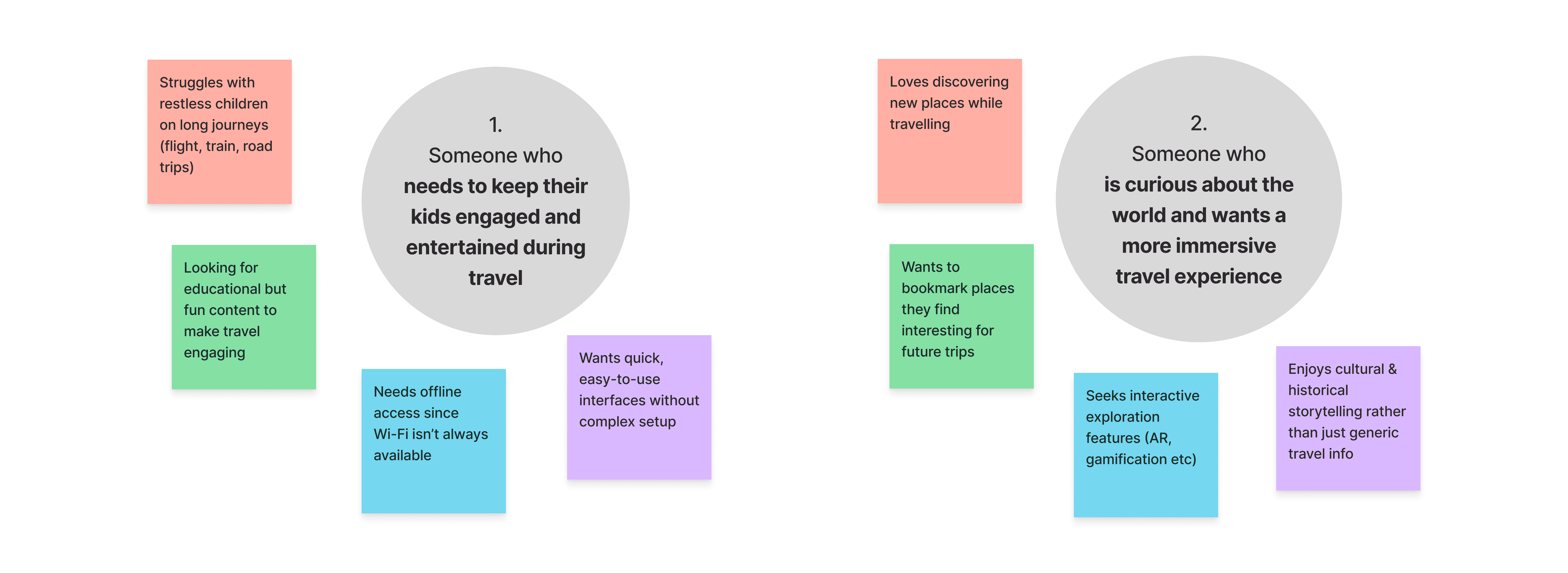 There were many feature ideas on the table, including gamification, quizzes, AR interactions, educational content, travel journalling, external integrations and personalised route-based recommendations. While these ideas added energy to the concept, not all of them needed to exist in the first version.